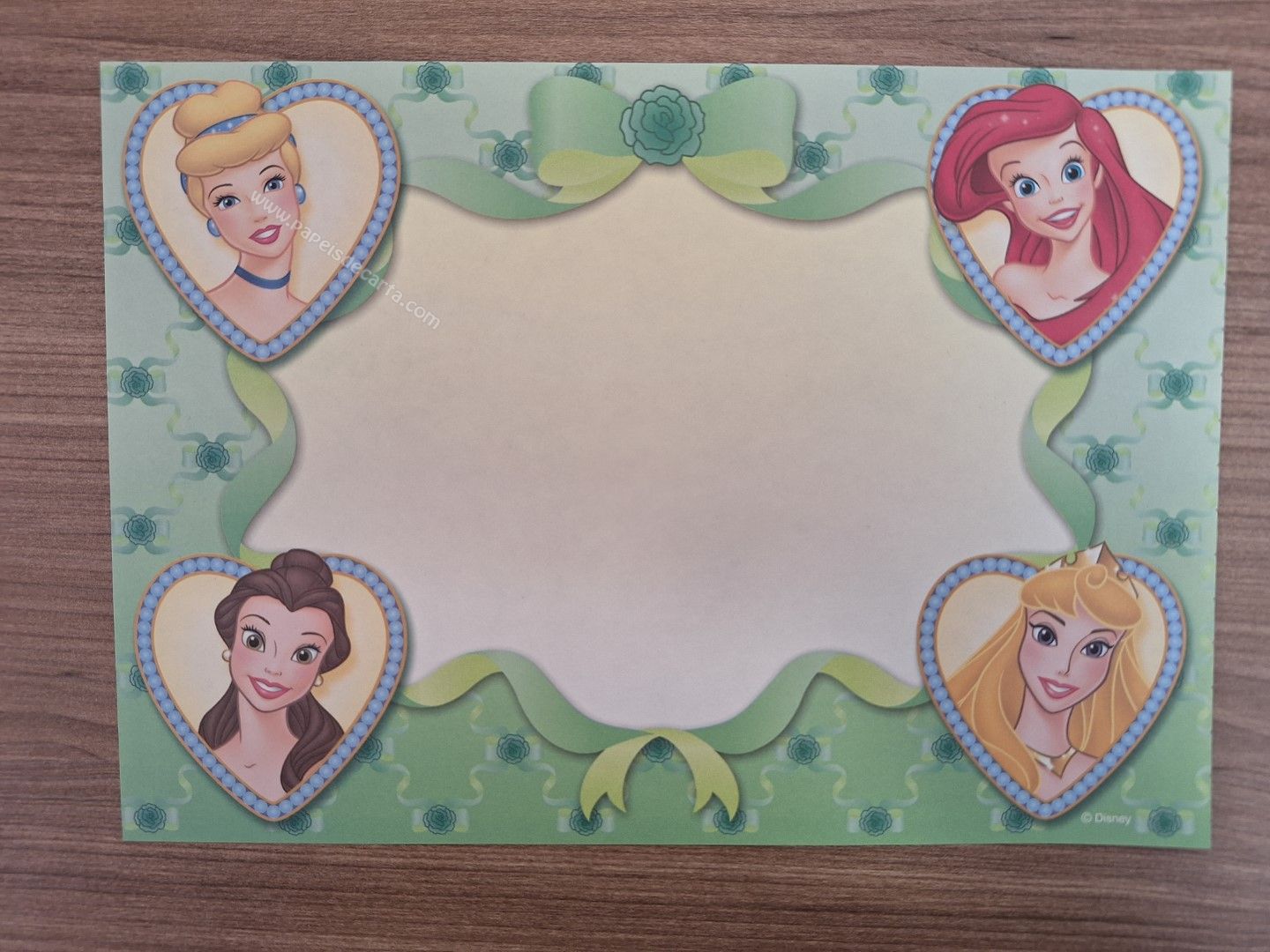 Papel de carta importados, Disney Princess, tamanho médio.