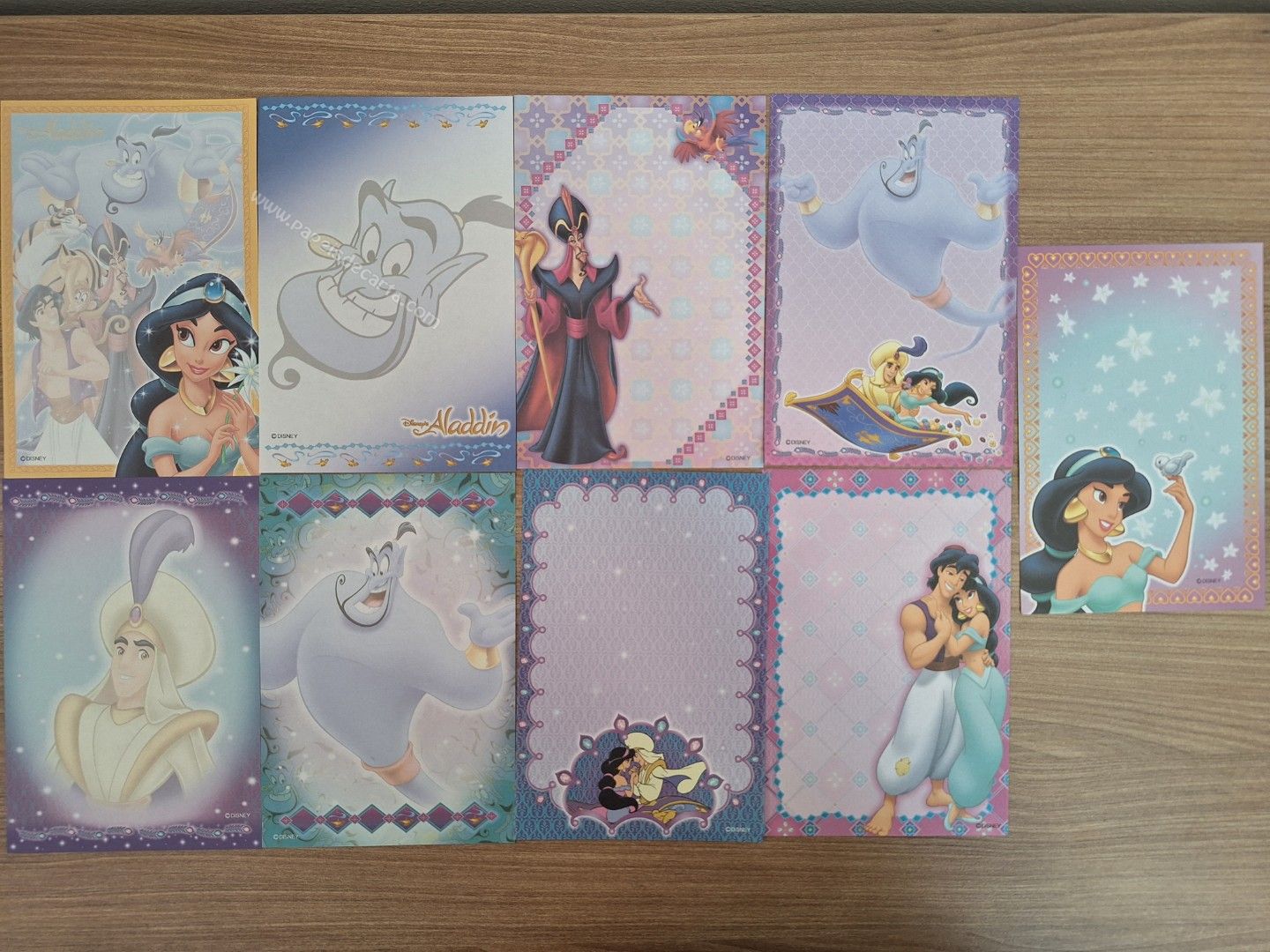 Lote com 9 papéis de carta, tamanho pequeno, princesas, do Aladdin, da Disney.