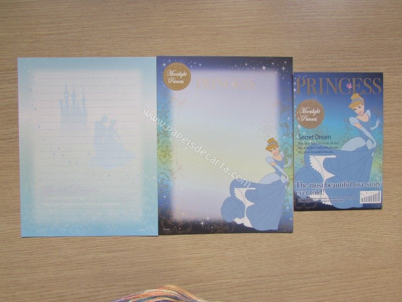 Conjunto importado, de papel de carta da Disney Princess, especial da Cinderella, com 2 folhas diferentes e 1 envelope, da Disney. Fabricante: Sun-Star