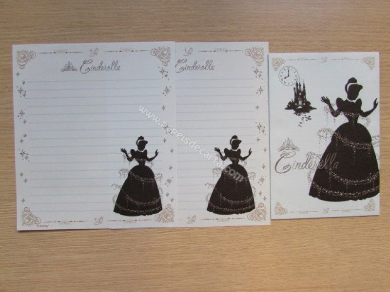 Conjunto importado, de papel de carta da Disney Princess, com 2 folhas iguais e 1 envelope, da Disney. Especial da Cinderella