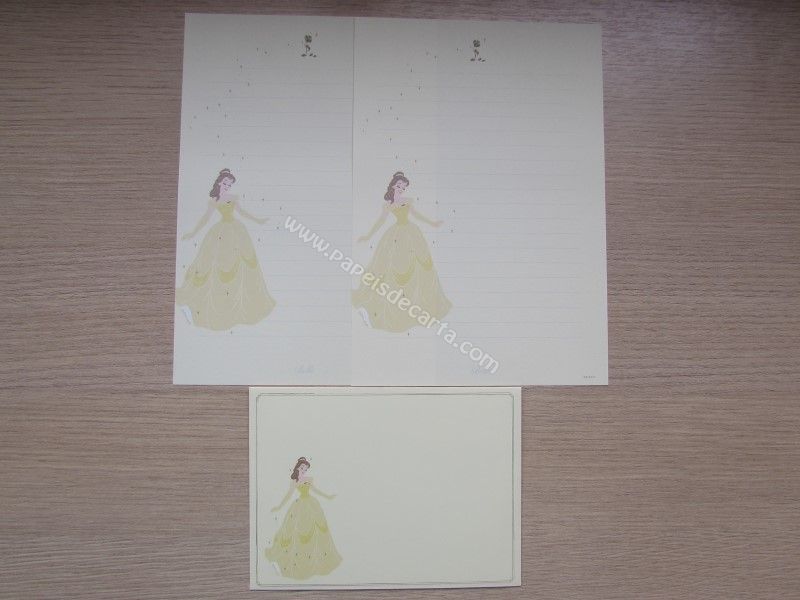 Conjunto importado, de papel de carta da Disney Princess, especial da Belle (Bela), com 2 folhas iguais e 1 envelope, da Disney. Fabricante: Greeting Life.