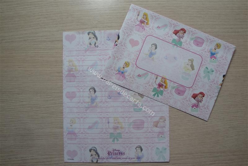Conjunto importado, de papel de carta com 1 folha e 1 envelope da Disney Princess.