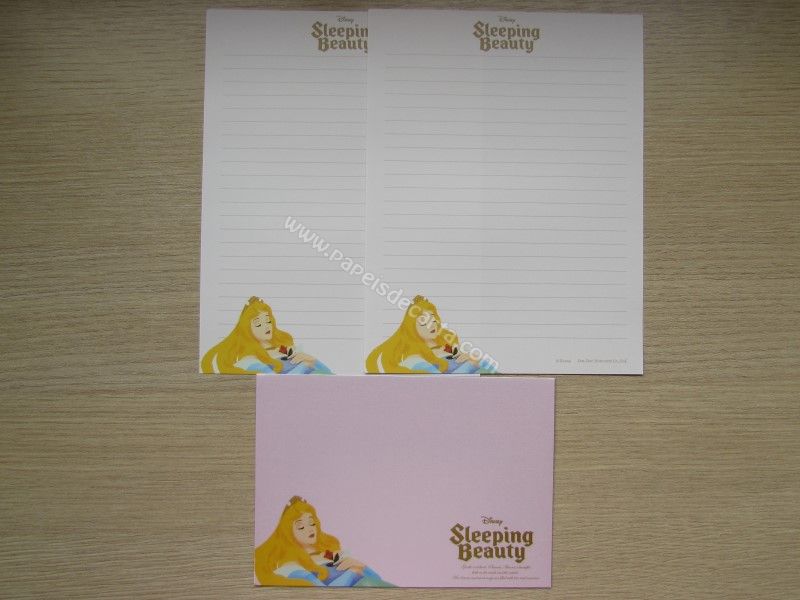 Conjunto importado, de papel de carta da Disney Princess, Sleeping Beauty, com 2 folhas iguais e 1 envelope, da Disney.