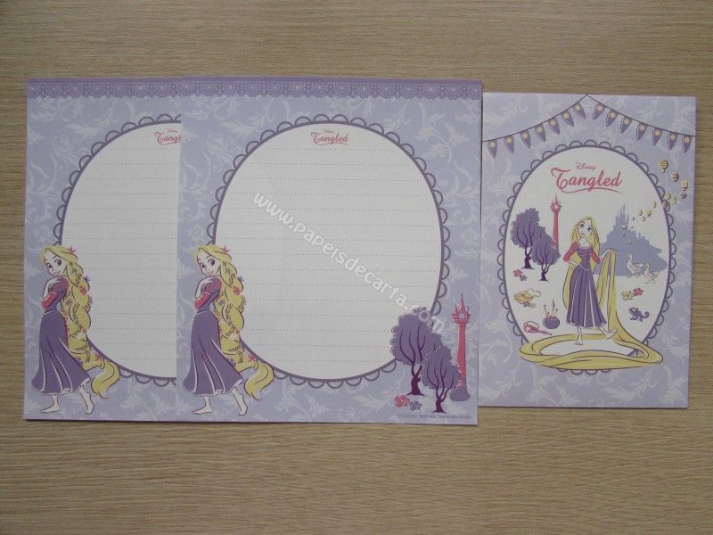 Conjunto importado, de papel de carta da Disney Princess, Enrolados, com 2 folhas iguais e 1 envelope, da Disney.