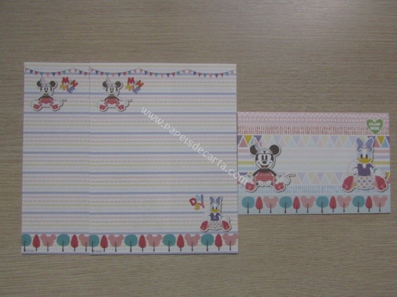 Conjunto importado, de papel de carta da Miss Daisy (Margarida) e da Minnie, com 2 folhas iguais e 1 envelope, da Disney. Fabricante: Sun-Star.