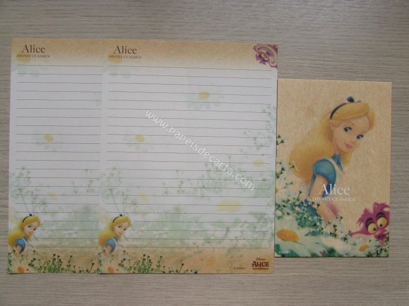 Conjunto importado raro, de papel de carta da Alice, com 2 folhas iguais e 1 envelope.