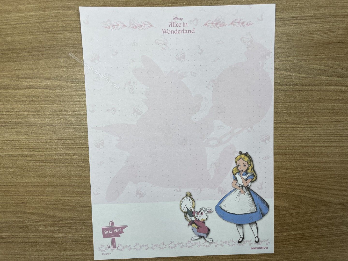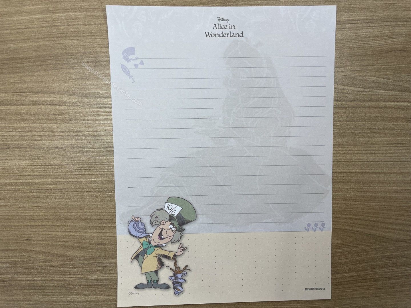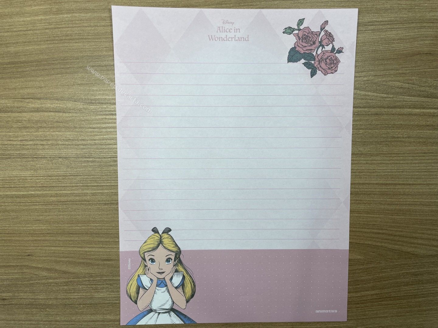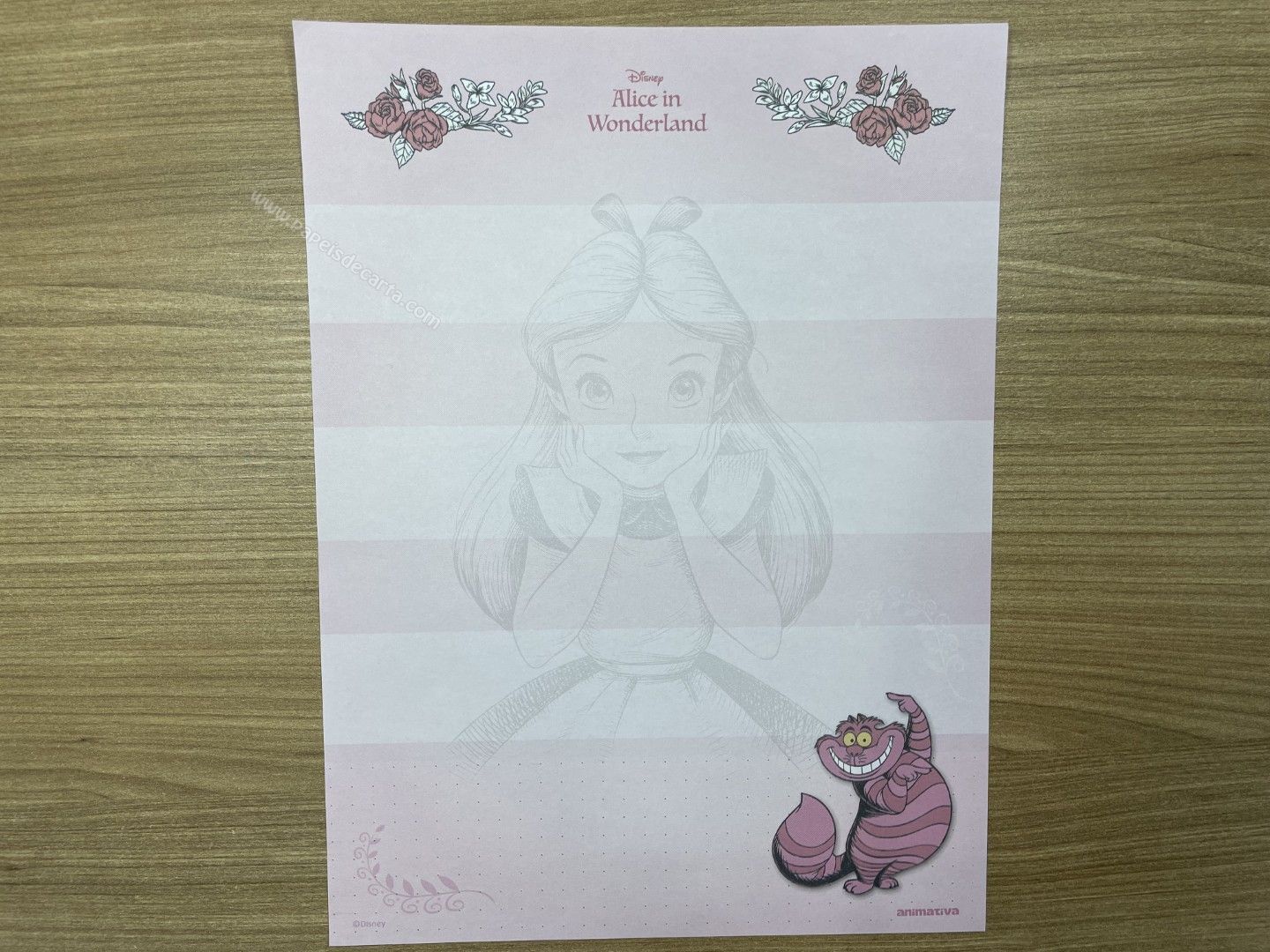 Lote de papel de carta da Alice, com 8 modelos diferentes, tamanho médio.