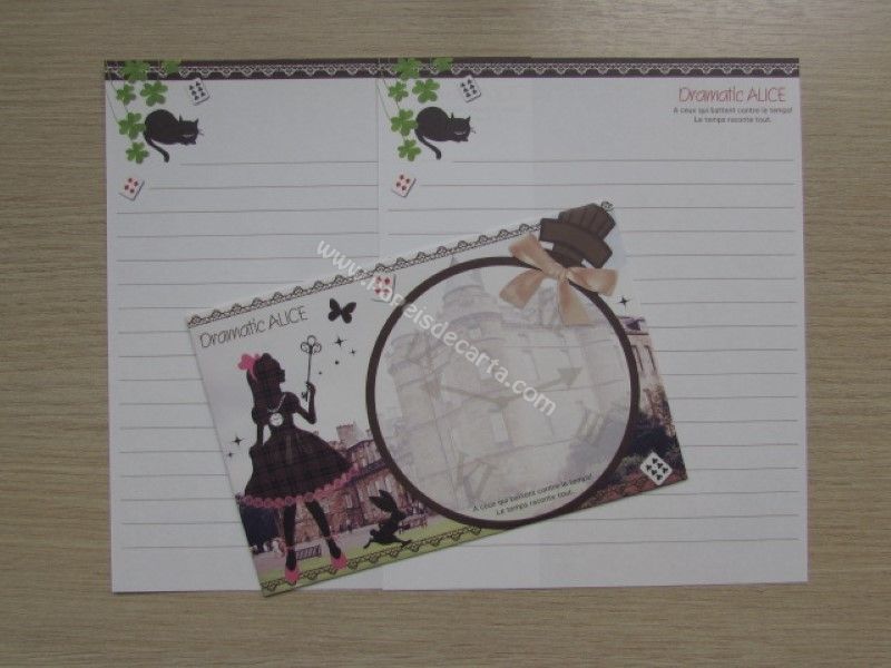 Conjunto importado, de papel de carta da Alice, com 2 folhas iguais e 1 envelope. Coleção: Dramatic Alice
