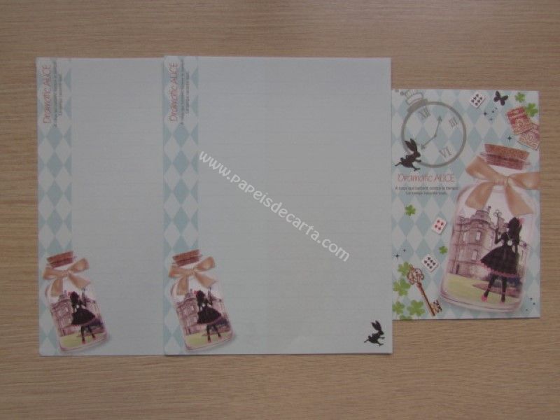 Conjunto importado, de papel de carta da Alice, com 2 folhas iguais e 1 envelope. Coleção: Dramatic Alice