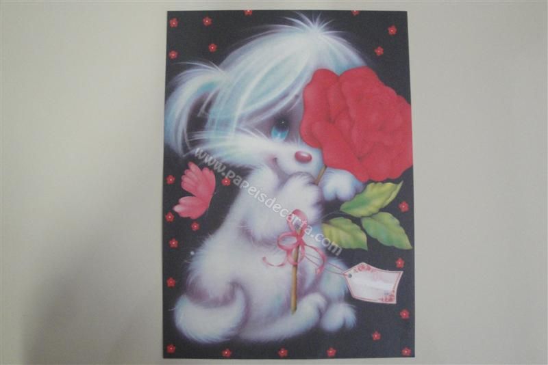 Papel de carta antigo, de tamanho grande (A4), com uma coelhinha segurando uma rosa vermelha. Coleção: - Número: 08