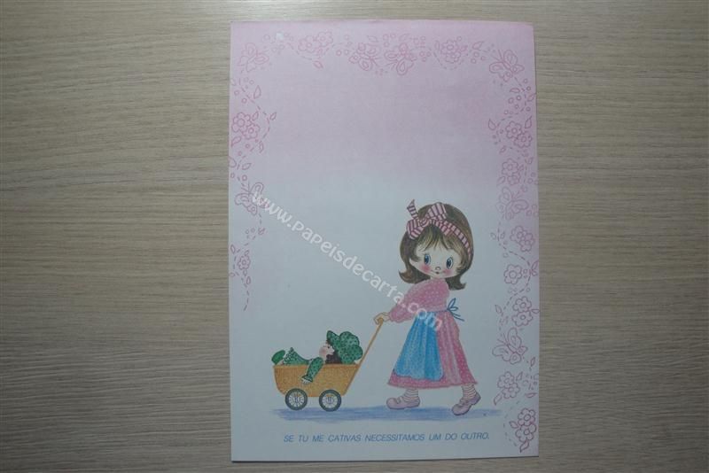 Papel de carta antigo, raro, tamanho médio, de coleção não identificada. Frase: Se tu me cativas necessitamos um do outro.
