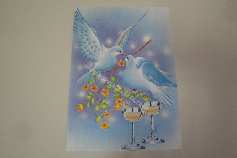 Papel de carta antigo, de tamanho grande (A4), com dois passarinhos se beijando. Coleção: - Número: - Obs: Assinado por Robson