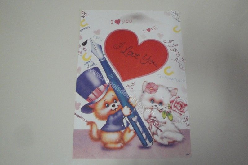 Papel de carta antigo, de tamanho grande (A4), com um gatinho escrevendo uma declaração de amor para sua amada. Coleção: - Número: 244