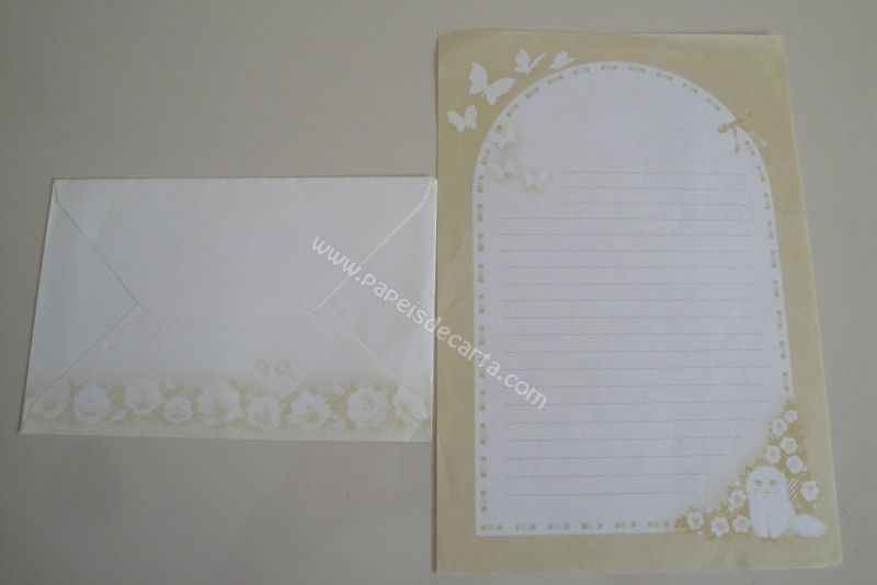 Papel de carta antigo com envelope, tamanho médio, de coleção não identificada.