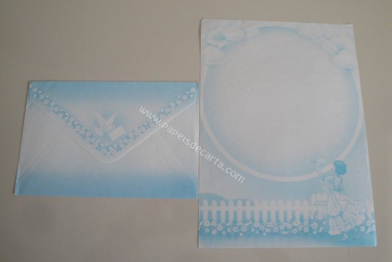 Papel de carta antigo com envelope, tamanho médio, de coleção não identificada.