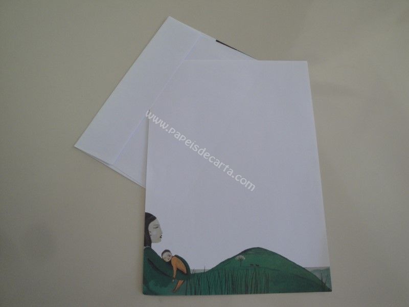 Papel de carta antigo com 1 folha tamanho médio e 1 envelope.