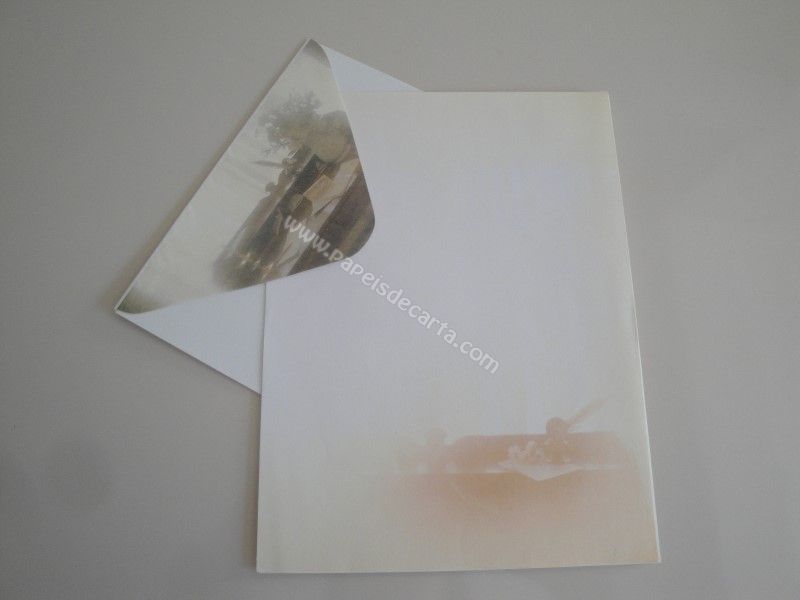 Papel de carta antigo com 1 folha tamanho médio e 1 envelope.
