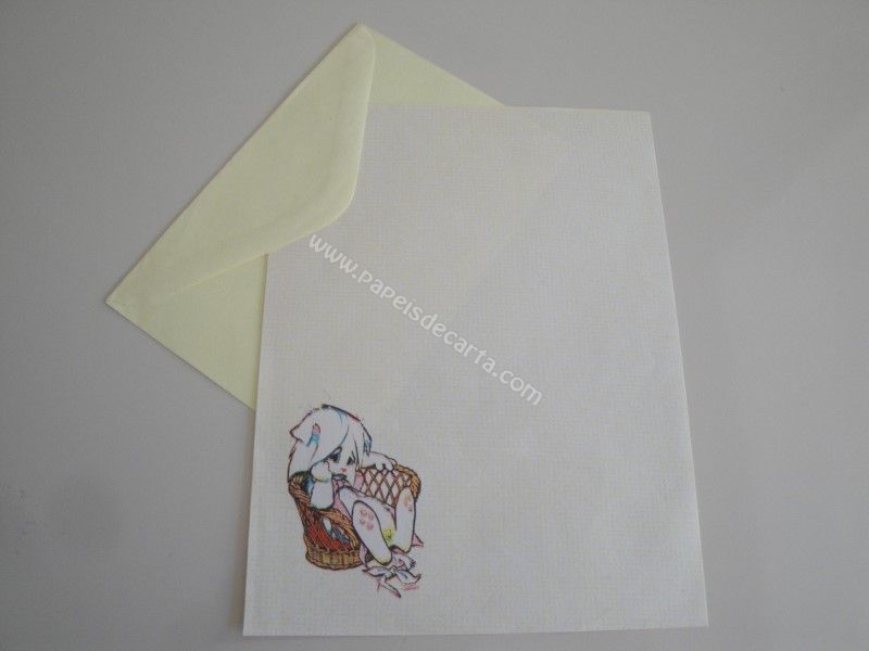 Papel de carta antigo com 1 folha tamanho médio e 1 envelope.