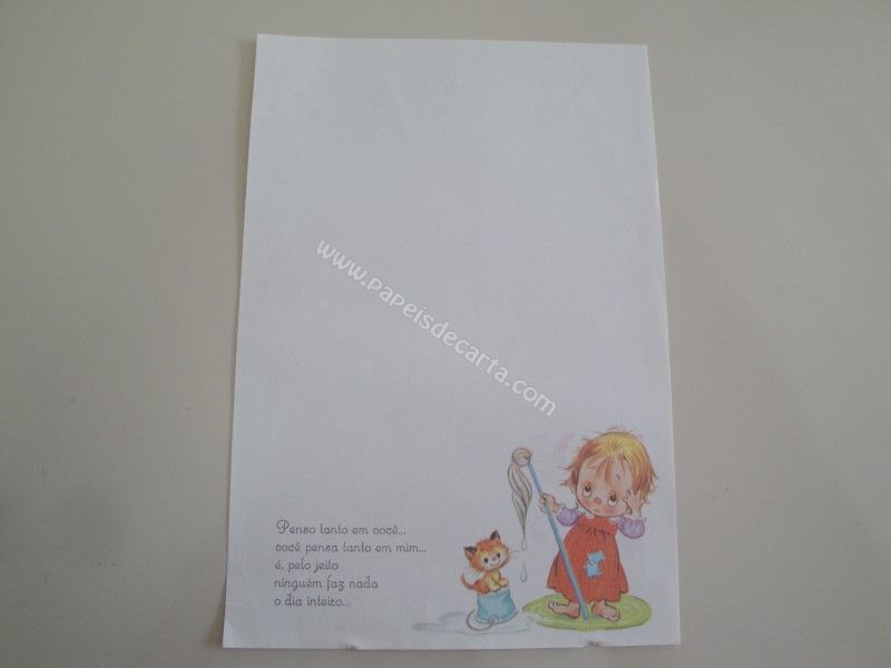 Papel de carta antigo com 1 folha tamanho médio. Possui a frase: Penso tanto em você... Você pensa tanto em mim... É, pelo jeito ninguém faz nada o dia inteiro...