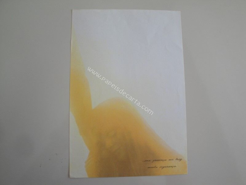 Papel de carta antigo com 1 folha tamanho médio. Possui a frase: ...sua presença me traz muita segurança.