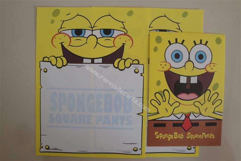 Conjunto importado, de papel de carta com 2 folhas iguais e 1 envelope do SpongeBob SquarePants (Bob Esponja Calça Quadrada).