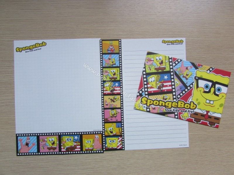 Conjunto importado, de papel de carta do SpongeBob (Bob Esponja), com 2 folhas diferentes e 1 envelope Fabricante: Kamio.