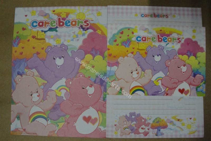 Conjunto importado, de papel de carta com 2 folhas iguais e 1 envelope do Care Bears (Ursinhos Carinhosos).