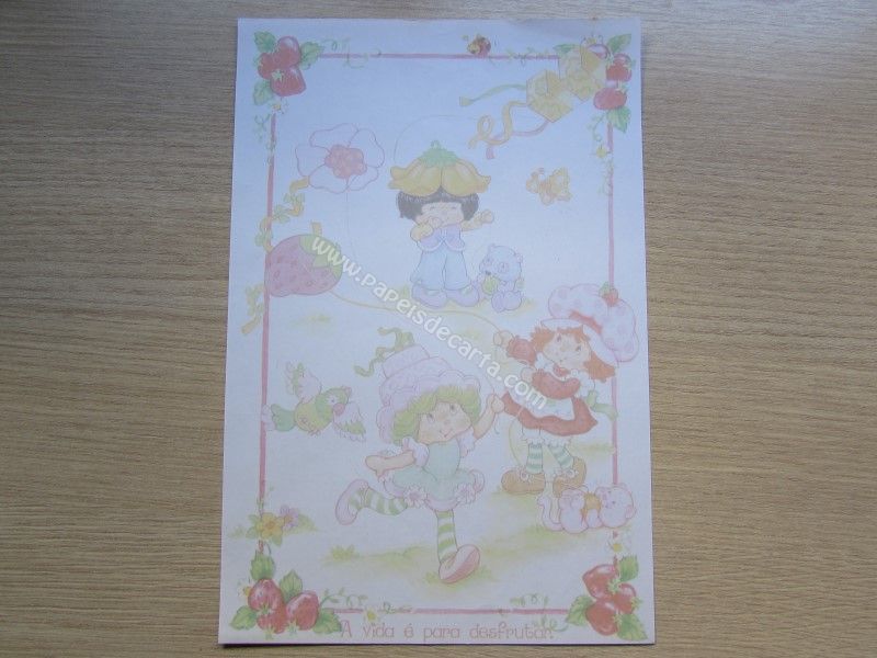 Papel de carta antigo, tamanho um pouco maior que o médio, da Moranguinho, sem numeração.