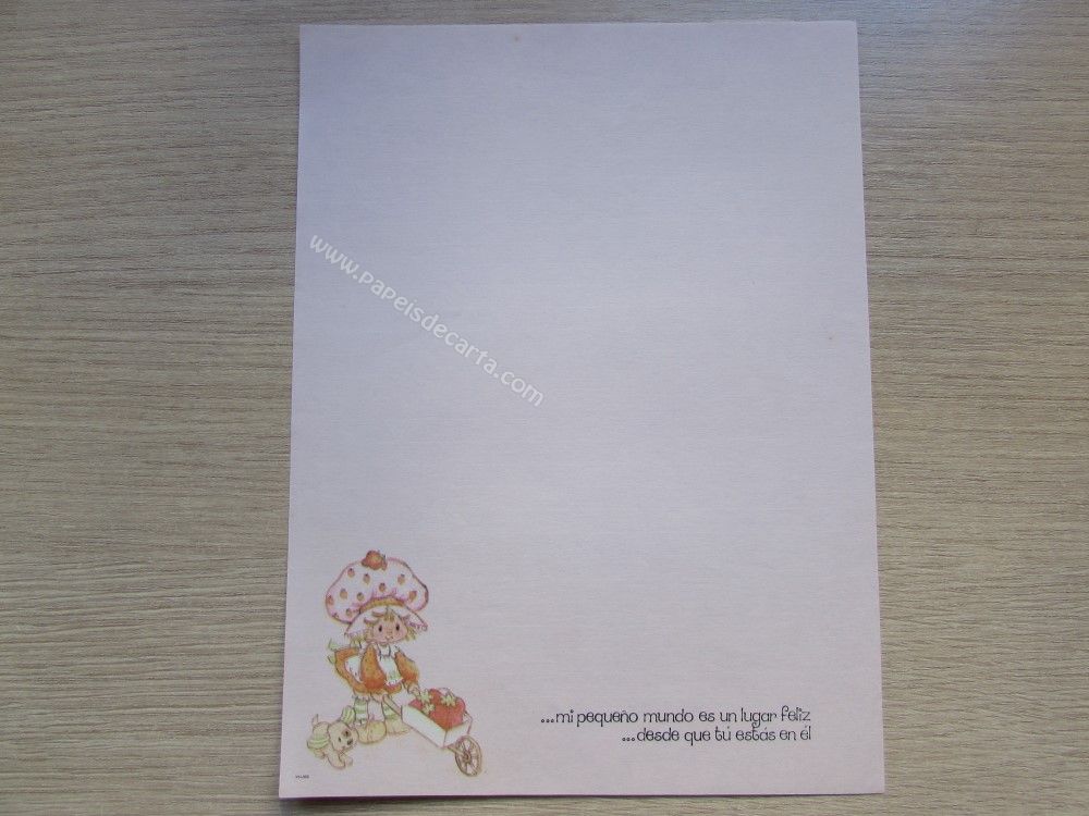 Papel de carta antigo, tamanho um pouco maior que o médio, da Moranguinho, sem numeração.