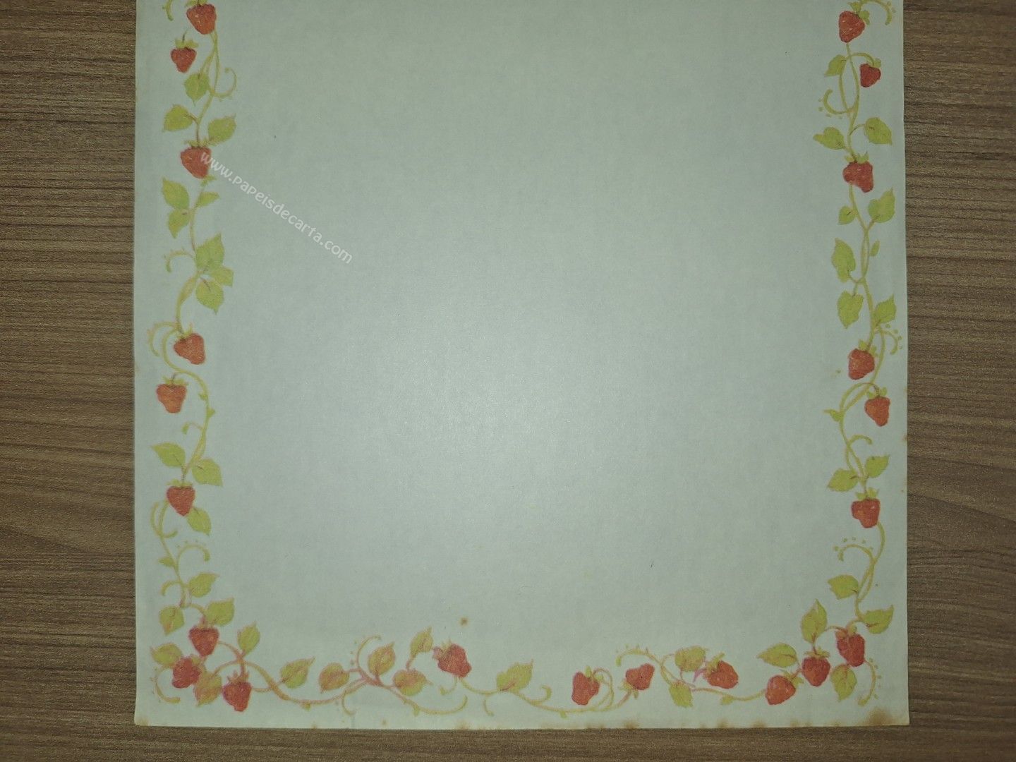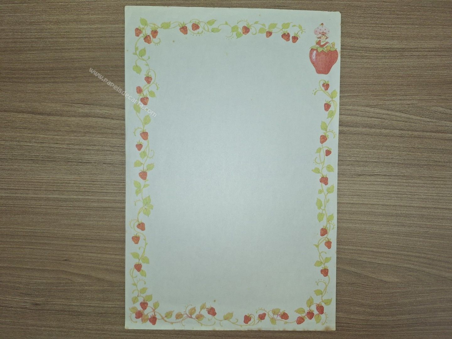 Papel de carta antigo da coleção Moranguinho. Tamanho um pouco maior que o médio. ** O PAPEL POSSUI MANCHINHAS DO TEMPO. VER FOTO. **
