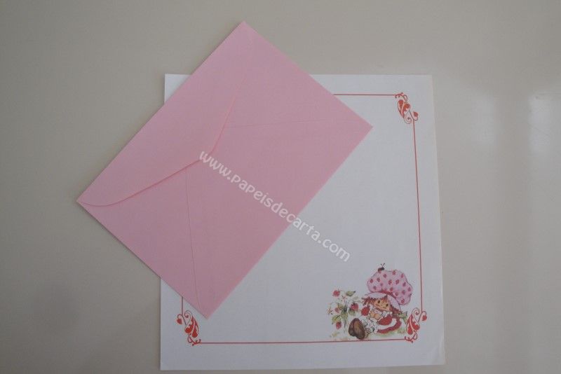 Conjunto, de papel de carta antigo, com 1 folha e 1 envelope rosa da Moranguinho.