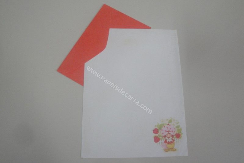 Conjunto de papel de carta antigo da Moranguinho, com 1 folha e 1 envelope (vermelho).