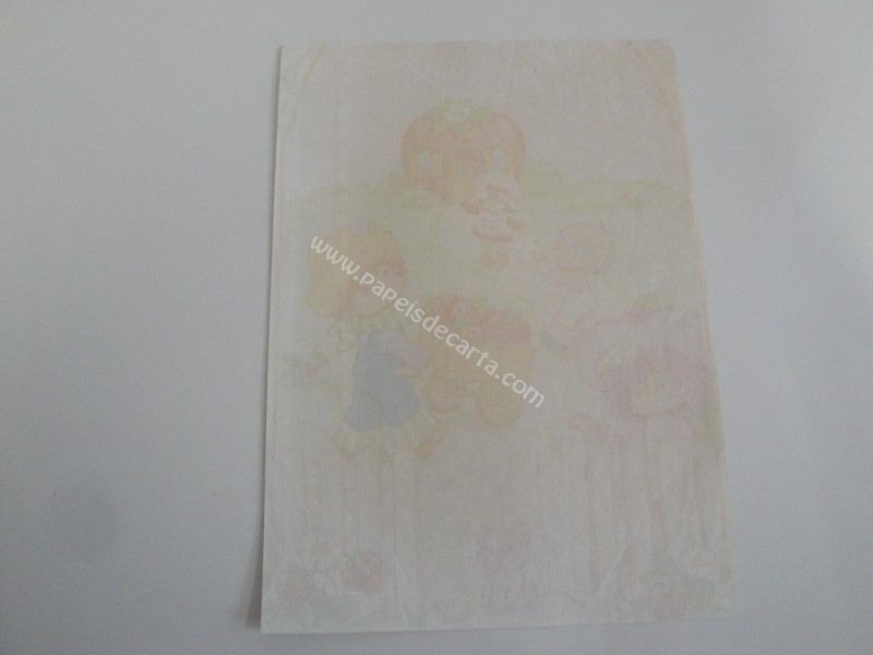 Papel de carta antigo, raro, tamanho um pouco maior que o médio, da Moranguinho, sem numeração. *O papel está com a parte de baixo dobrada.*