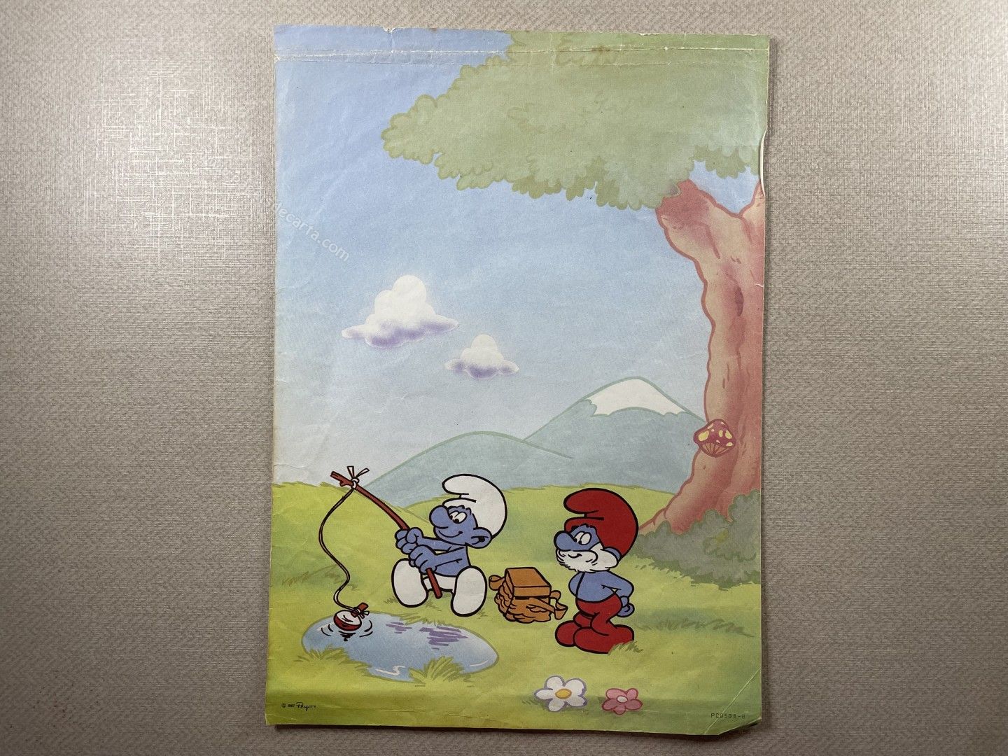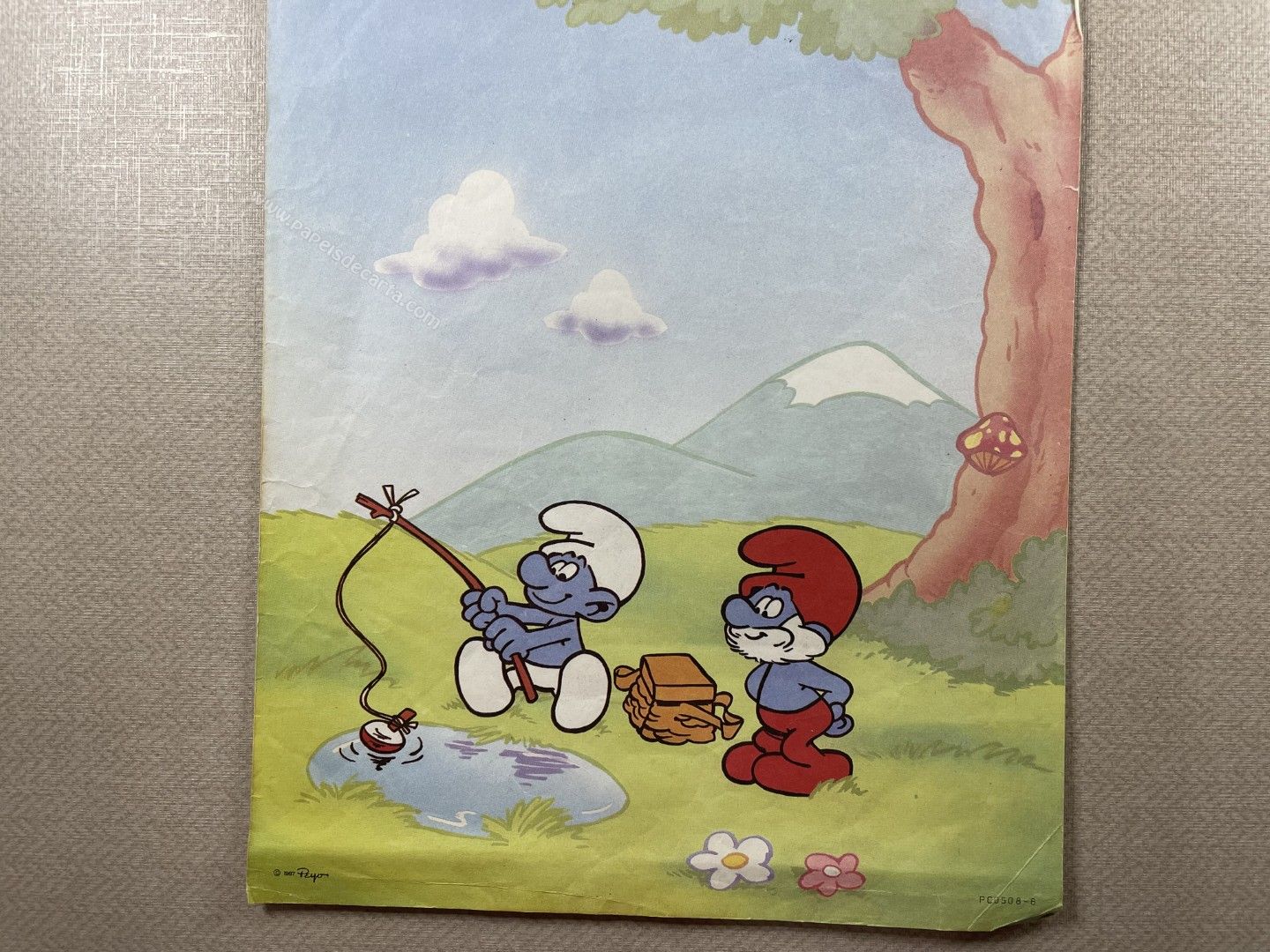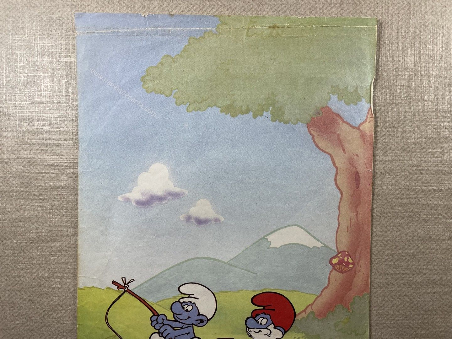 Conjunto de Papel de Carta Antigo, tamanho médio, dos Smurfs. ** O PAPEL ESTÁ BEM AVARIADO. VER FOTO. **