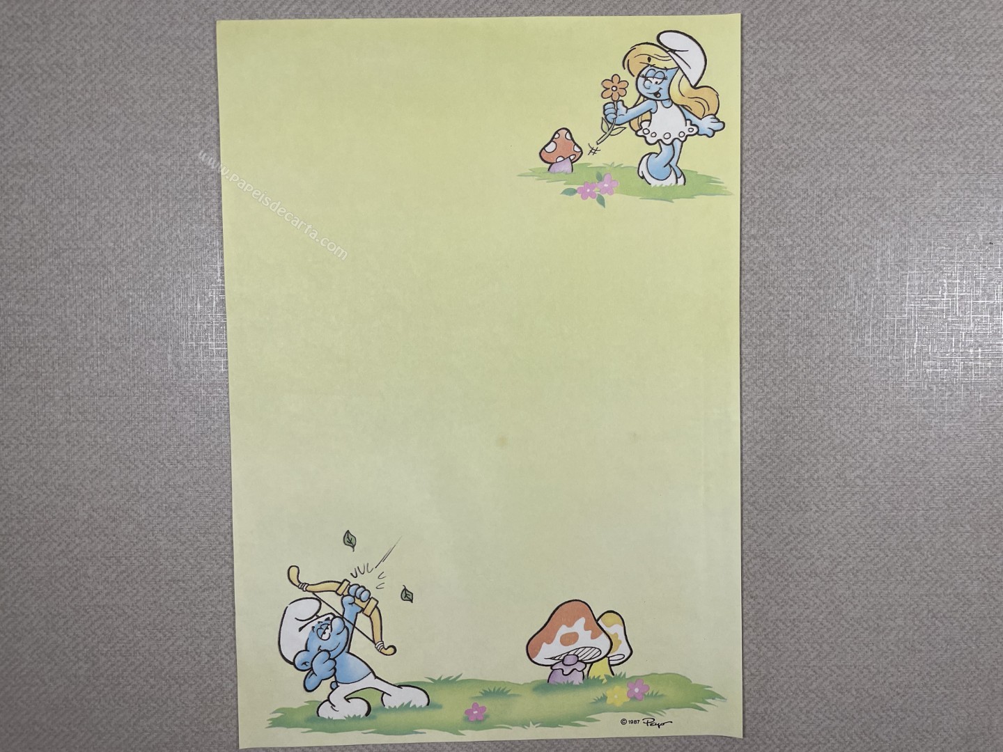 Conjunto de Papel de Carta Antigo, tamanho médio, dos Smurfs.