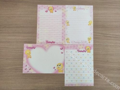 Lote com 4 papéis pequenos (nota/memo) do Baby Looney Tunes.