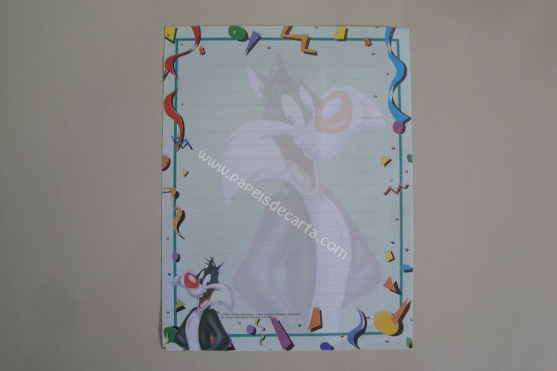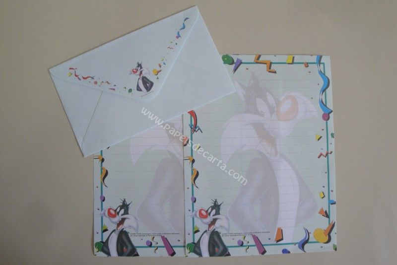Conjunto de papel de carta com 2 folhas e 1 envelope do Looney Tunes. - Frajola