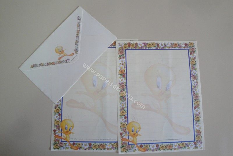 Conjunto de papel de carta com 2 folhas e 1 envelope do Looney Tunes. - Piu-Piu