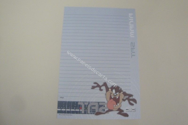Papel de carta antigo, dos Looney Tunes, sem número, com o personagem Tasmanian Devil (Taz) em um papel azul.