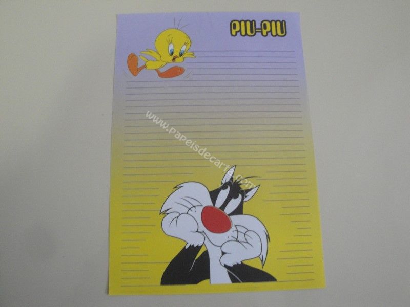 Papel de carta antigo, dos Looney Tunes, Piu-Piu e Frajola.