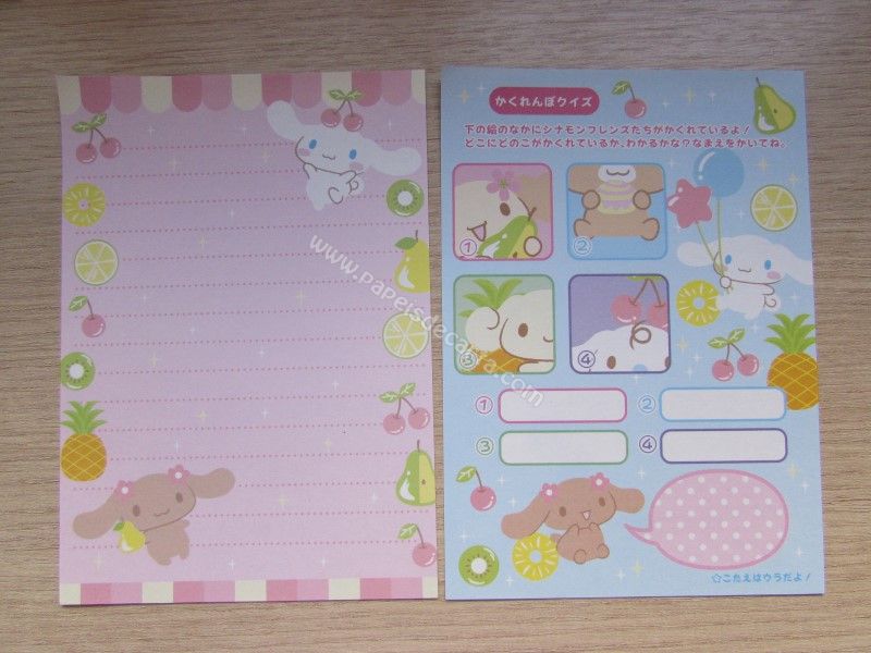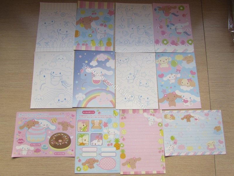 Lote de papel de carta tamanho pequeno importado, com 12 modelos diferentes do Cinnamoroll.