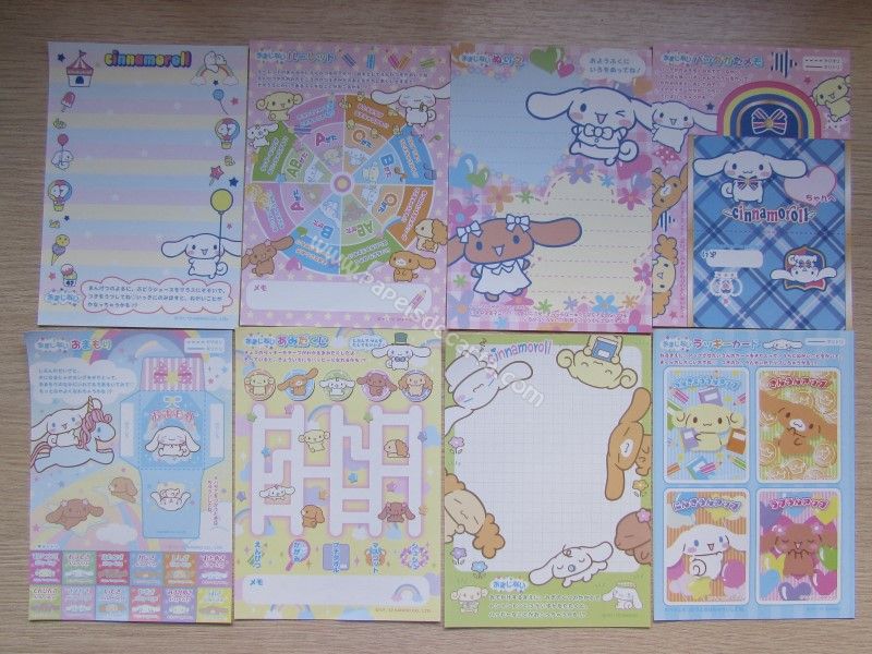 Lote de papel de carta tamanho pequeno importado, com 8 modelos diferentes do Cinnamoroll.