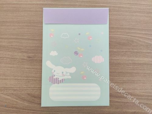Conjunto importado, de papel de carta do Cinnamoroll, com 1 folha e 1 envelope, da Sanrio. Fabricante: Sanrio