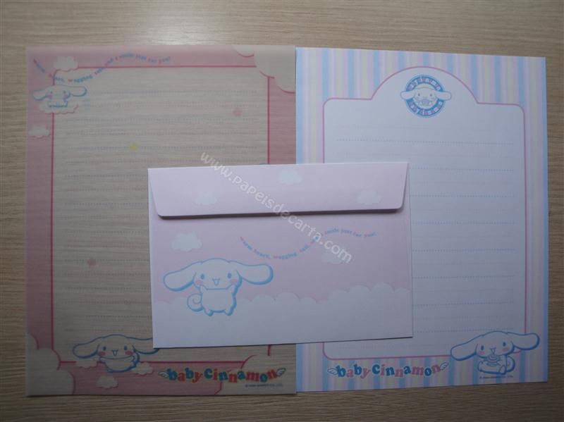 Conjunto importado, de papel de carta com 2 folhas diferentes, sendo uma em papel vegetal e 1 envelope do Cinnamoroll.