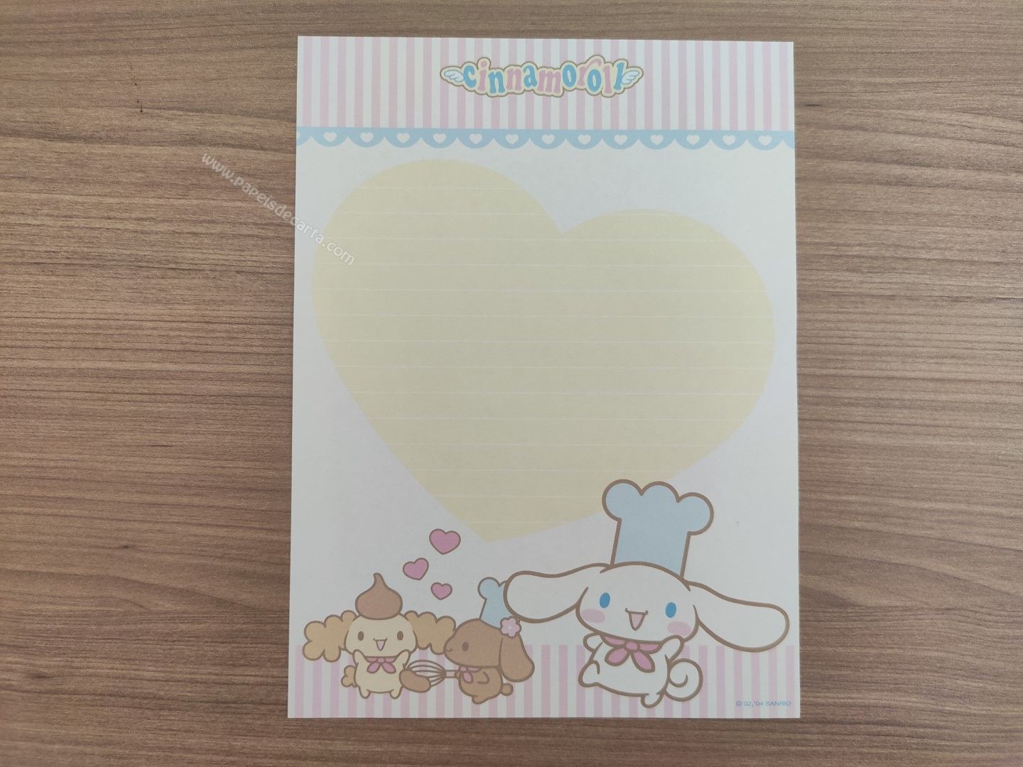 Papel de carta do Cinnamoroll, da Sanrio. Tamanho médio.