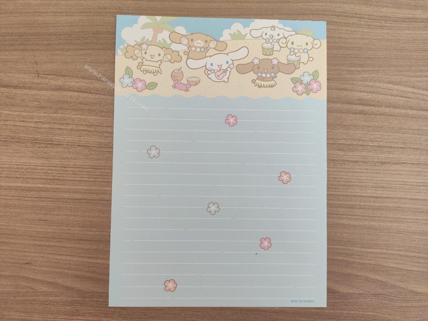 Papel de carta do Cinnamoroll, da Sanrio. Tamanho médio.