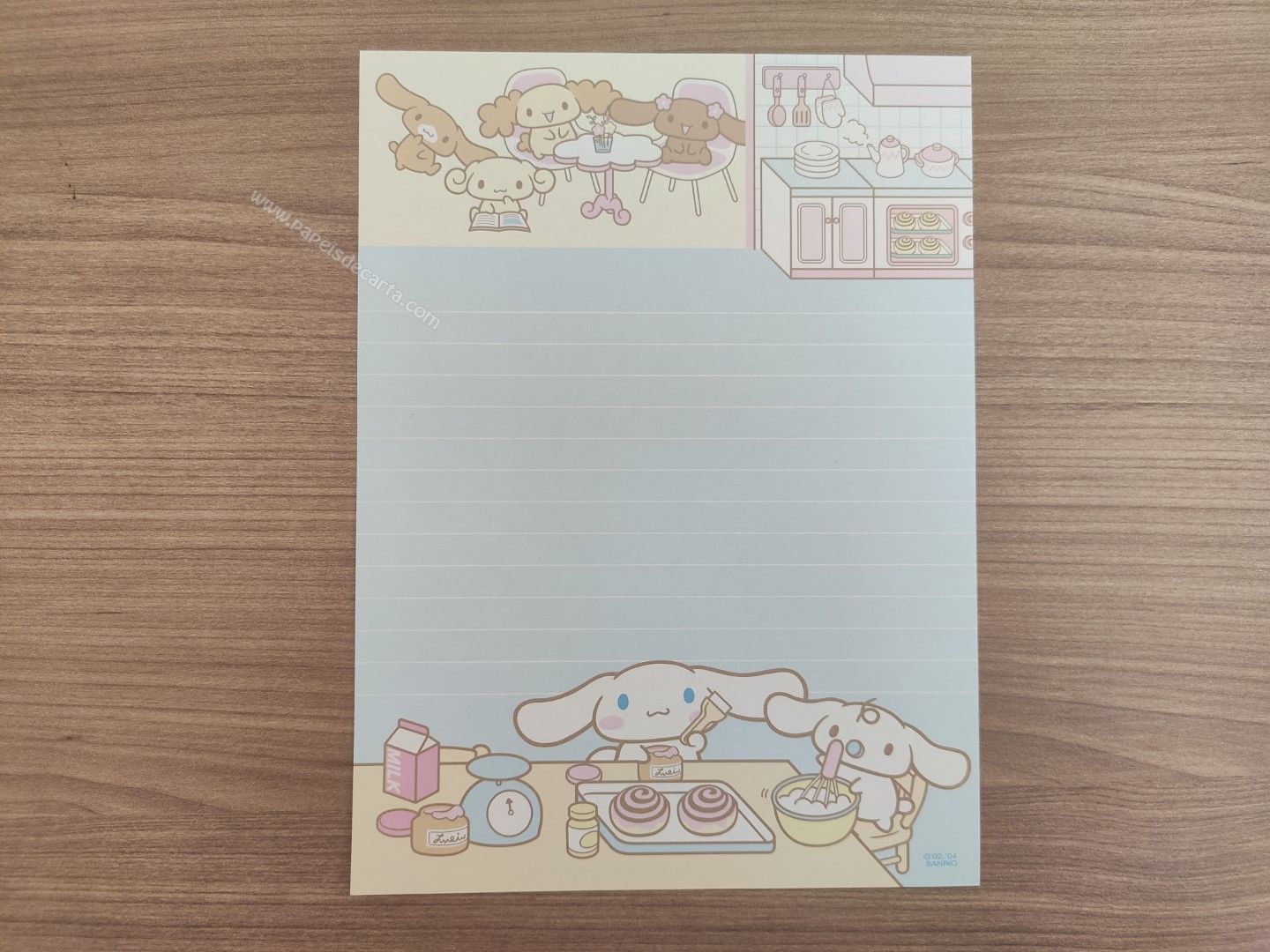Papel de carta do Cinnamoroll, da Sanrio. Tamanho médio.