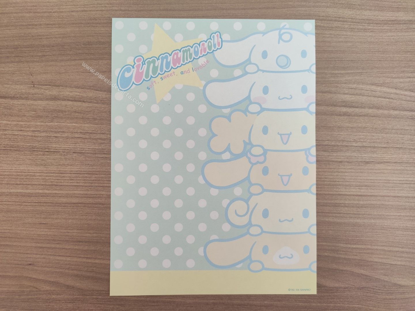 Papel de carta do Cinnamoroll, da Sanrio. Tamanho médio.