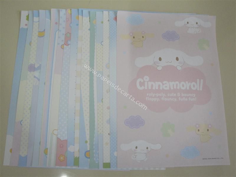 Conjunto importado, de papel de carta com 16 folhas diferentes do Cinnamoroll.