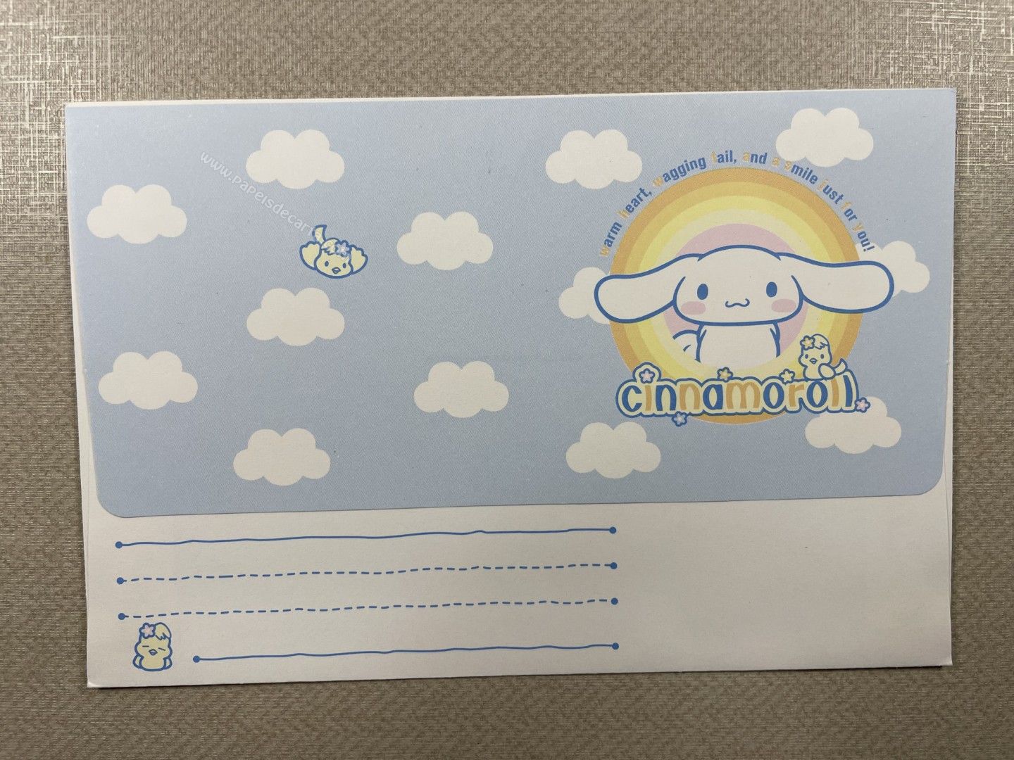 Conjunto de papel de carta importado, com 2 folhas e 1 envelope, do Cinnamoroll, da Sanrio.